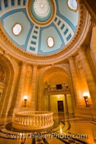 The antechamber at the base of the dome rotunda of the Manitoba Legislative Building (built between 1913-1920) in the City of Winnipeg, Manitoba, Canada.