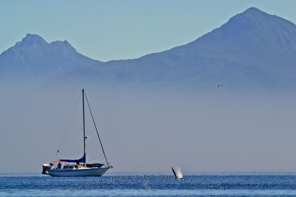 Sailboat Pictures are usual photographed during high winds to show the sails and motion. The Sailboat Pictures I prefer to take are the opposite, peaceful and relaxing. This sailboat Picture is one of my favourites, showing Johnstone Strait with Killer Whales