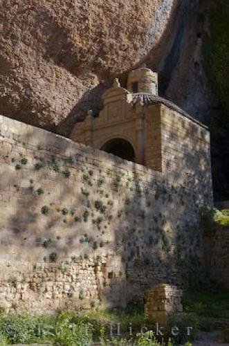The unique building - displaying some fine architecture is the Monastery of San Juan de la Pena which was constructed over ten centuries ago in the shadow of a huge rock. Even today the Sierra de la Pena area of Aragon, Spain is not overly populated, but in the 10th century the secluded location, high in a canyon, was extremely hard to reach.Monasterio de San Juan de la Pena, Sierra de la Pena, Huesca, Aragon, Spain, Europe.