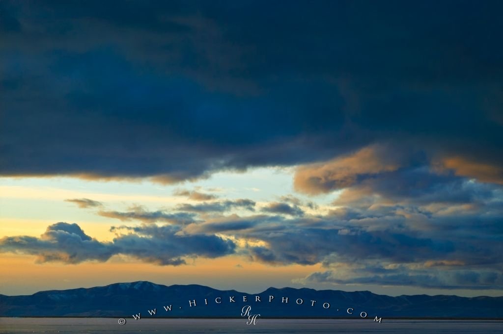 Sitting along the lake shore of the Great Salt Lake in Utah on an evening such as this can be very intriguing as the clouds form into dark thick masses. ... continue below the picture...